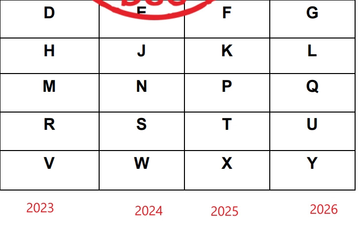 Het vijfde teken is het jaar ->CZM0F4F07L(jaar; 2025)