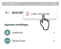 Als je de lader toch wilt verwijderen, je kan deze selecteren en vervolgens de drie puntjes bovenaan selecteren om het menu te openen en "Verwijder lader" te selecteren.