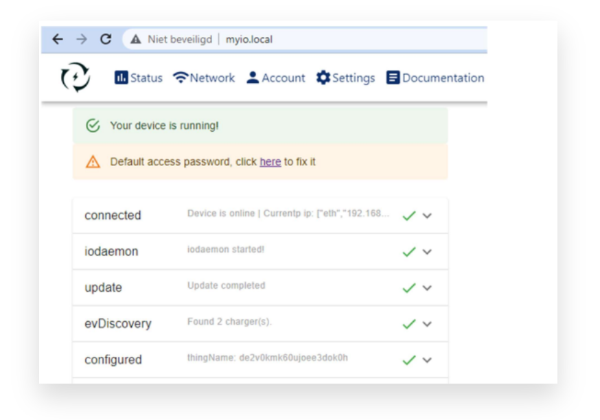 Open de volgende link op een computer, smartphone of ander apparaat dat is aangesloten op het lokale netwerk. http://myio.local